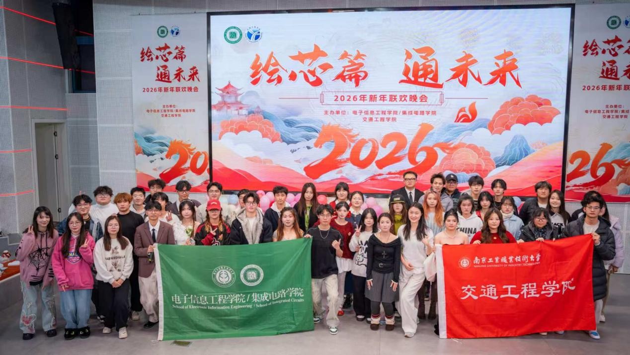岁末启新,暖意融融。12月28日晚 18:30,“绘芯篇 通未来” 2026 年新年联欢晚会在双创大楼A栋创业讲堂璀璨开场。本次晚会由交通工程学院团委与电子信息工程学院/集成电路学院团委联合主办,两院三百余名师生代表齐聚于此,共叙情谊,喜迎新年。