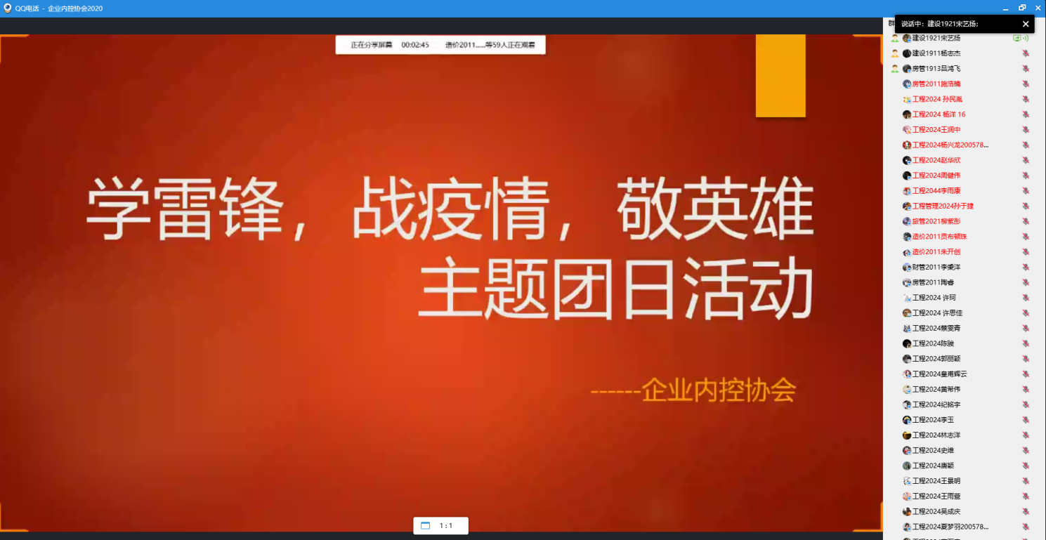 我协会于2021年3月12日在线上举办“学雷锋,抗疫情,敬英雄”主题团日活动。