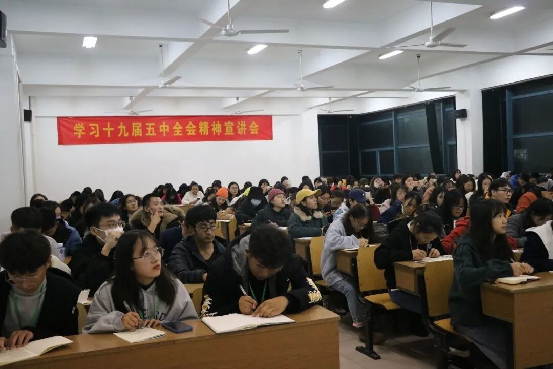 此外,11月25日下午,经济管理学院在乐业楼阶梯教室举办了主题为“学习党的十九届五中全会精神”的新思想公开课,各班级干部和学生会团总支各部门学生干部代表共146名同学参加了此次活动,同学们观看会议视频,分享自己对于党的十九届五中全会精神的理解与收获,全场气氛活跃,同学们在交流中碰撞出了思想火花。