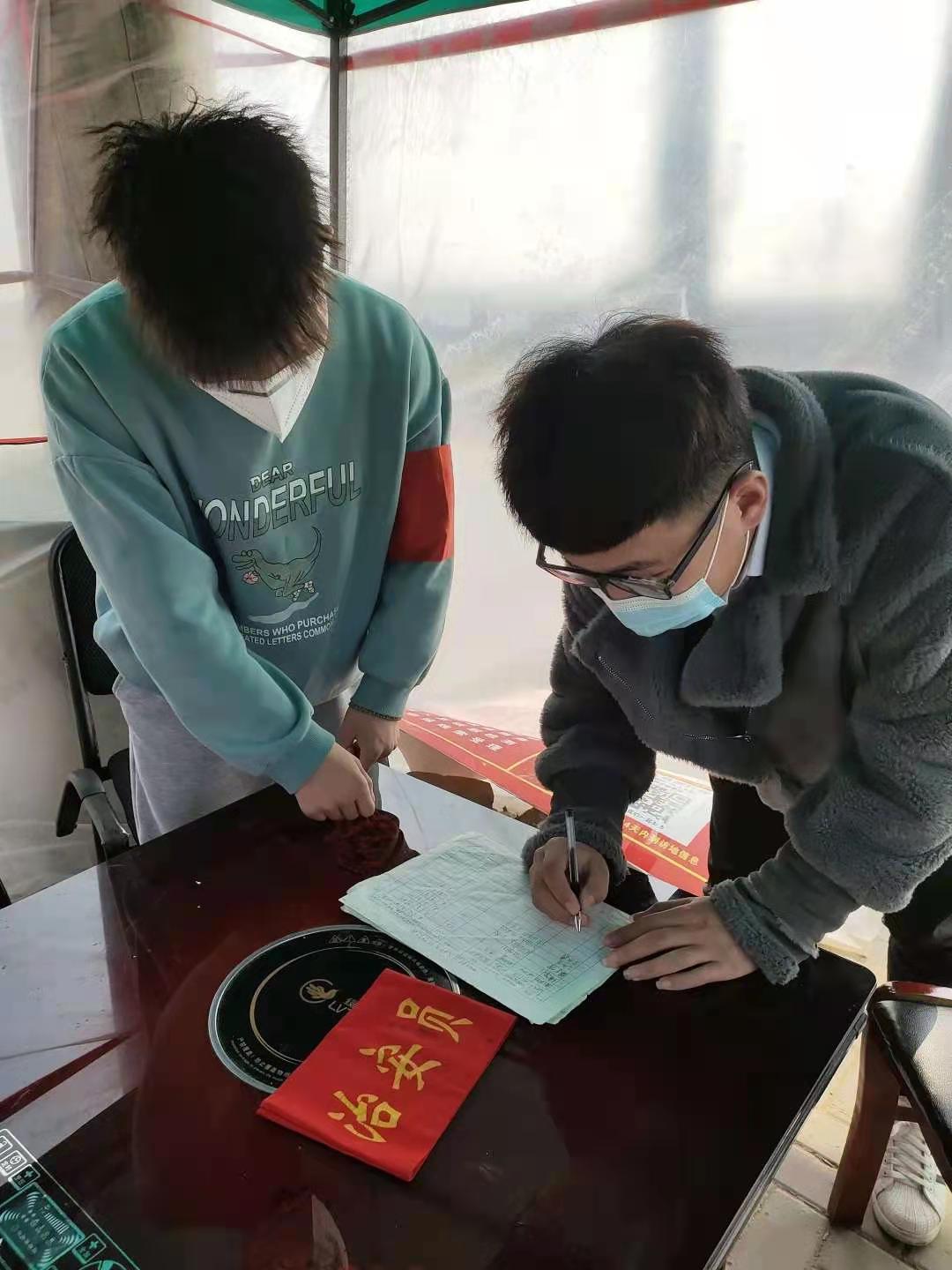 刚回到家的时候,我妈妈就让我上村委会去报备一下信息。然而因为回乡人数比较多,村委会的人手不够,忙不过来。就只能让大家“自助式服务”,这时候我就想着,既然寒假在家,那我也可以做一些有意义的事情。我就向他们表达出了我要帮助他们的意向,也就从那时候开始了我志愿者的新生活。