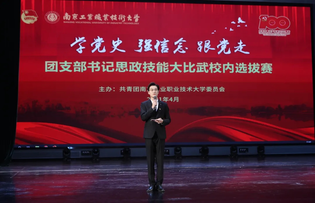 2021年4月15日18:00,我校团委于大学生创新发展中心剧场举办“学党史 强信念 跟党走”团干部思政技能大比武团支部书记专项赛决赛。经过前期学院初赛、团务知识答题、十分钟团课视频展示、团日活动策划评选,共有十一名团支书从全校三百八十三名团支部书记中脱颖而出,参加本次比赛。
