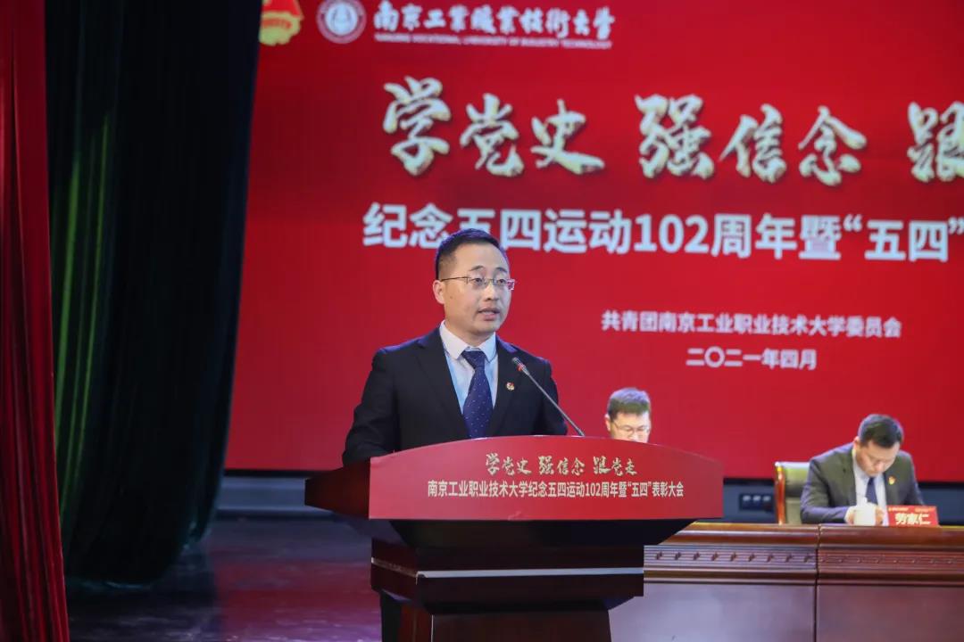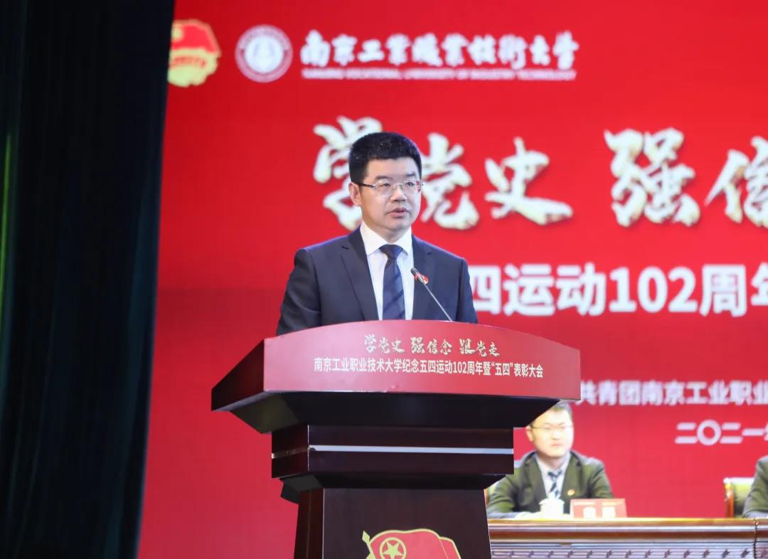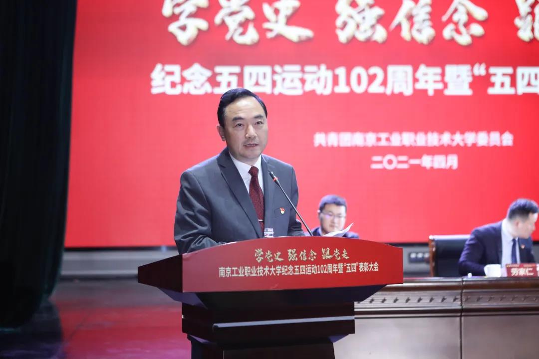校党委书记吴学敏发表了热情洋溢的讲话,吴书记首先向全校青年师生致以节日的问候和祝福!向受到表彰的先进集体和个人表示热烈的祝贺!他指出我校前身中华职业学校与五四运动的发生同处于那个波澜壮阔的时代,涌现出了不少可歌可泣的事迹和先进青年典型,如张闻天、邹韬奋、江竹筠、秦怡、顾心怿、王世绩等一大批校友在青春年代就埋下了投身强国建设的种子。一代又一代南工青年学子身上都有着深厚的家国情怀、鲜亮的红色基因。全校各级团组织和全体青年要始终牢记习近平总书记“广大青年要肩负历史使命,坚定前进信心,立大志、明大德、成大才、担大任,努力成为堪当民族复兴重任的时代新人,让青春在为祖国、为民族、为人民、为人类的不懈奋斗中绽放绚丽之花”的深情寄语和殷殷嘱托,与时代同步伐、与人民共命运,树立远大理想、练就过硬本领,努力成为德智体美劳全面发展的社会主义建设者和接班人。并提出三点希望:一是希望全校青年不忘初心、坚定理想,做五四精神的传播者;二是希望全校青年奋力拼搏、勇于创新,做五四精神的实践者;三是希望全校青年勤学修德、敢为人先,做五四精神的开拓者。